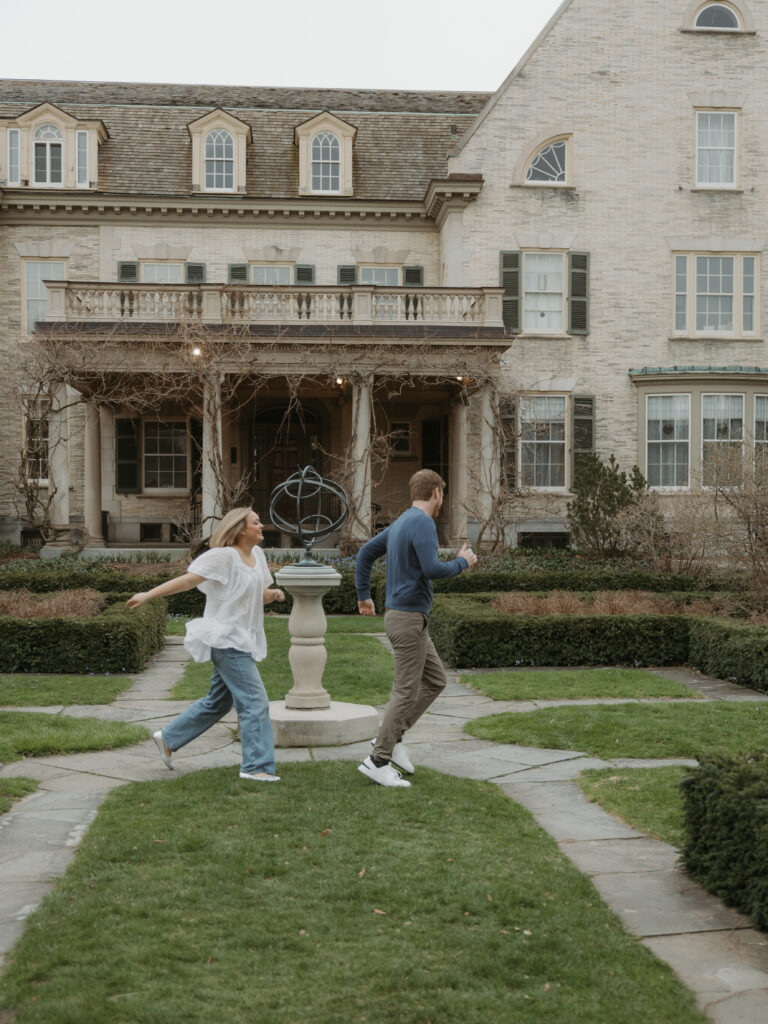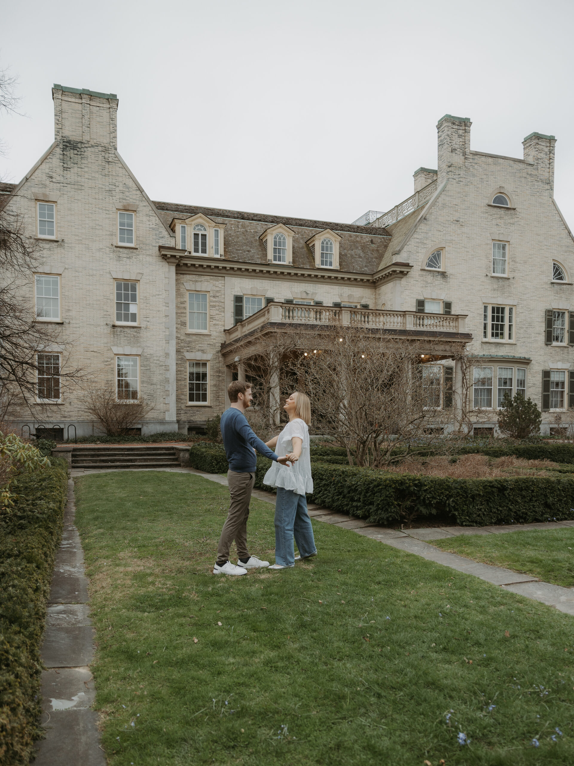 Jamie and Sadie’s engagement session at The George Eastman House in Rochester, NY, was the perfect blend of timeless elegance and romantic charm.